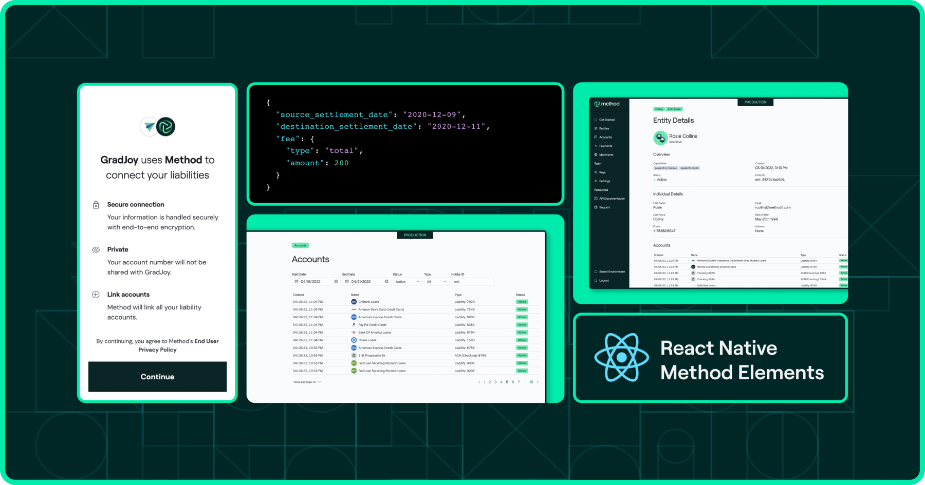 Do more with more data! Enhance and simplify your user experience by having instant access to important liability details and the ability to make payments to any liability, all powered by Method Data and Method Sync.